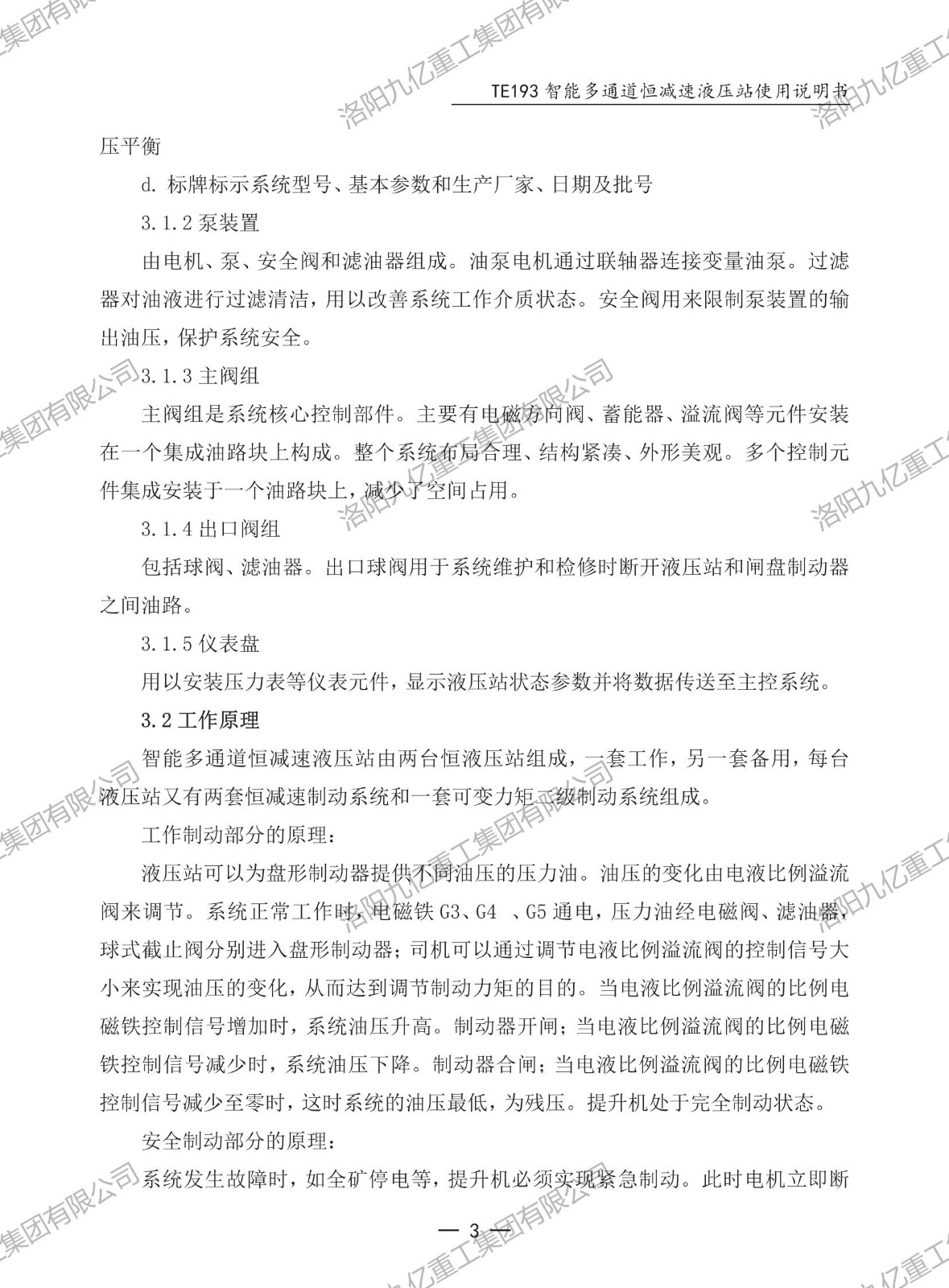智能多通道恒減速液壓站TE193使用說(shuō)明書(shū)